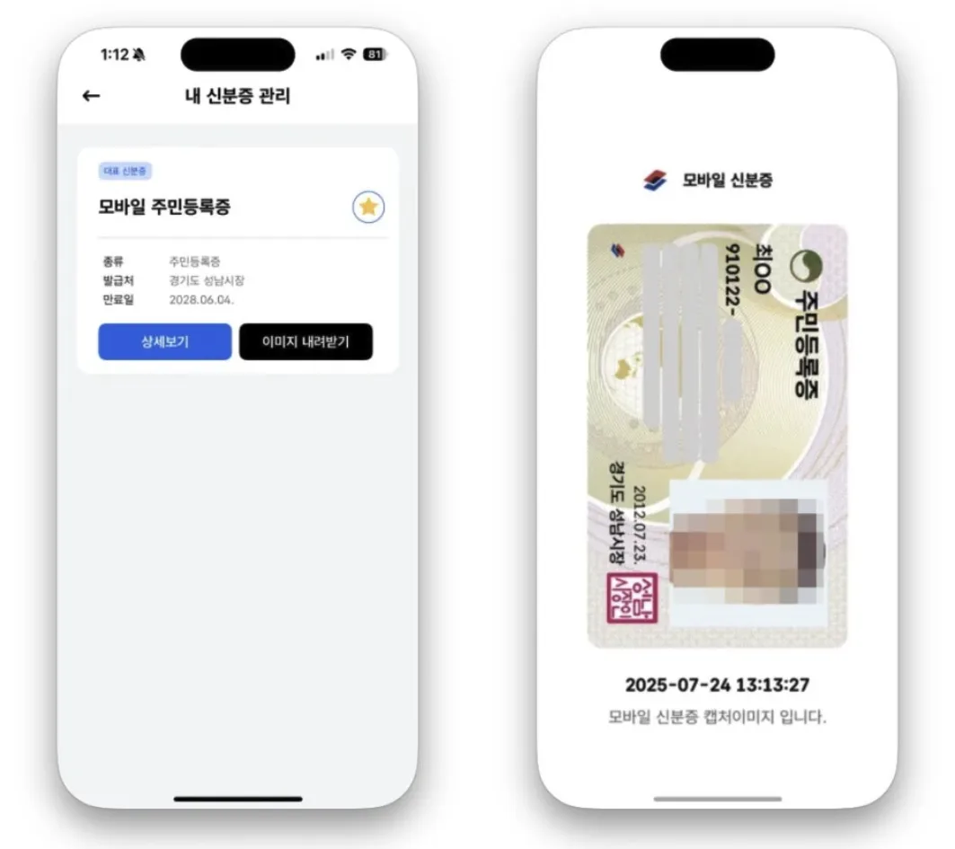정부24의 모바일 주민등록증을 발급해두었다면 신분증 캡처본을 이미지로 내려받을 수 있어요.