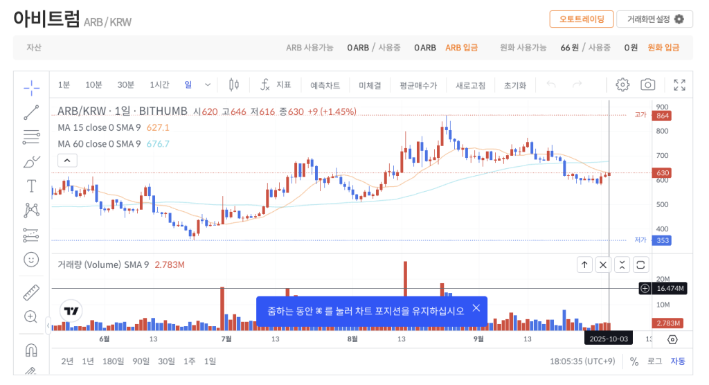 아비트럼은 최근 단기간에 급등세를 보였는데요, 몇 가지 이유가 있습니다. 먼저, 중요 지지선에서 강한 매수세가 들어오며 시장 신뢰를 회복한 점이 있습니다. 이로 인해 투자자들이 자신감을 얻었고, 이는 추가 자금 유입으로 이어졌습니다. 또한, 단기 이동평균선이 장기선을 향해 올라오면서 이른바 골든 크로스 패턴의 기대감을 키운 것도 투자 심리를 자극했어요.
