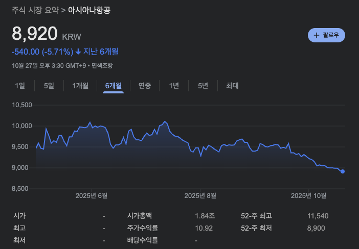 요즘 시장 보면 마음이 급해져요. 코스피는 4,000을 넘기고, 반도체랑 우주항공 테마까지 다 불이 붙었는데 정작 아시아나항공은 잠든 것처럼 9천 원 근처에서만 버티고 있거든요. 실제로 아시아나항공은 최근에도 8,900원대~9,000원대에서 박스권 흐름을 반복 중이에요. 이걸 보고 ‘여기서만 좀 더 담아두면 언젠가 대한항공이랑 합쳐지면서 한 번에 튀는 거 아닌가?’라고 기대하는 사람들이 많아요. 저도 그 생각이 왜 나오는지 이해해요. 하지만 결론부터 말하면, 지금은 반등을 ‘기대’하는 자리가 아니라 ‘확인’을 해야 하는 자리예요.