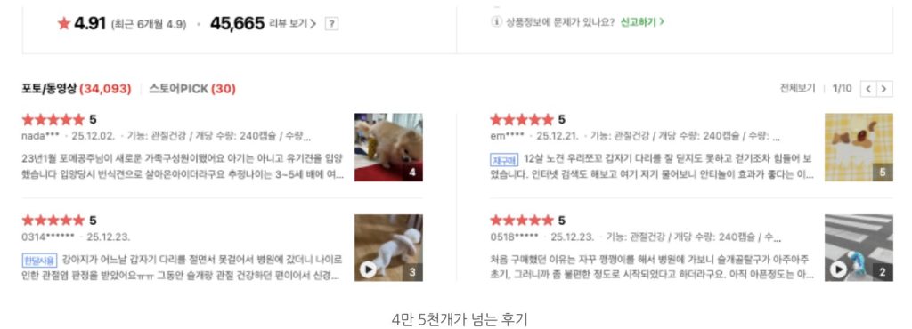 제품명을 알아와서 집에서 검색해보니 이미 후기도 엄청나고 요즘 강아지 키우는 집에서는 대부분 먹이는 영양제더라고요.