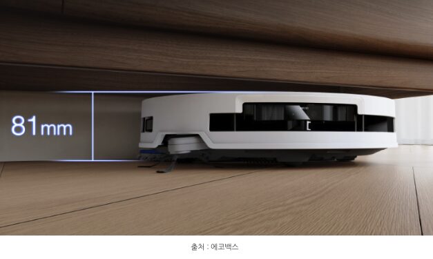 제가 이 제품을 선택한 가장 결정적인 이유는 바로 ‘높이’였습니다. 시중에 나와 있는 고성능 로봇청소기들은 보통 센서 때문에 높이가 10cm를 훌쩍 넘어가곤 합니다. 하지만 T50 PRO OMNI는 본체 높이가 81mm에 불과합니다.