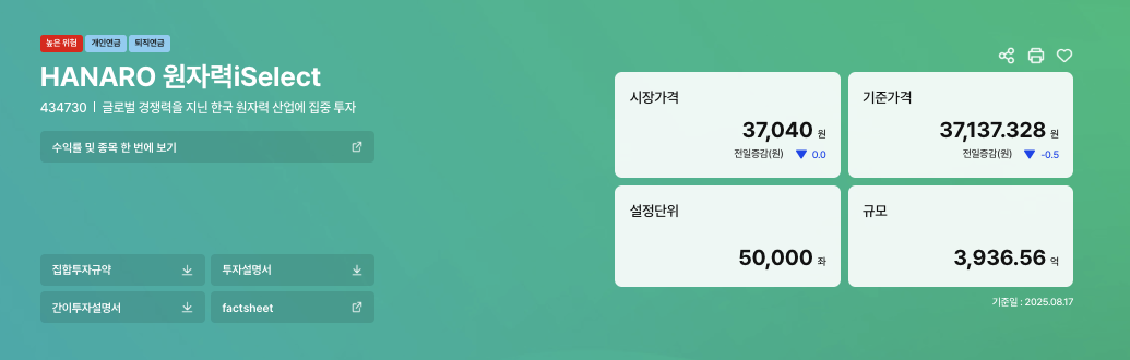 | ETF명 | HANARO 원자력iSelect |