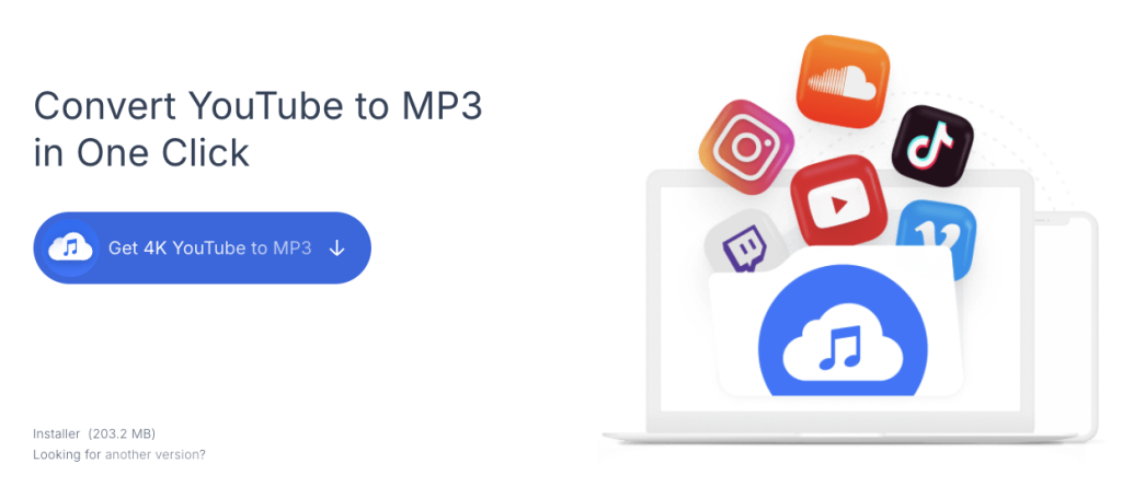 먼저 4Kdownload 공식 사이트에 접속해서 4K YouTube to MP3 페이지로 들어갑니다. 그리고 좌측의 [Get 4K Youtube to MP3] 버튼을 눌러 설치 파일을 내려받고 설치를 진행해줍니다.