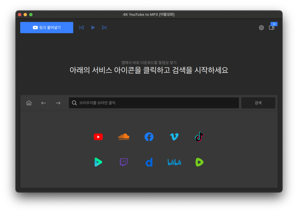 실행하면 위와같은 화면이 나옵니다. 이제 실제로 유튜브 음원을 MP3로 바꿔볼게요.