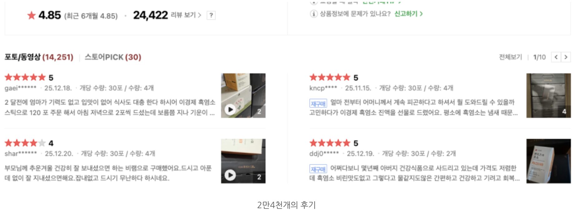 물론 완벽한 제품만은 아니에요. 24가지 전통 재료로 잡내를 많이 잡았다고는 하지만 예민한 분들이라면 여전히 흑염소 특유의 진한 향이 낯설게 느껴질 수 있습니다. 또한 한 박스에 30포씩 들어있어 부피가 꽤 크다 보니 보관 장소를 미리 확보해두는 것이 좋아요. 하지만 이런 사소한 점들을 감안하더라도 원물의 퀄리티와 함량을 생각하면 충분히 이해할 수 있는 수준이었습니다.