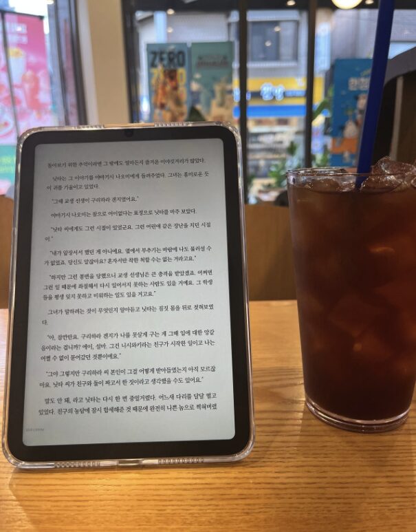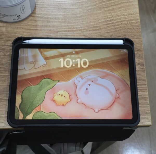 이게 왜 좋으냐면, 언제 어디서나 가볍게 꺼내 쓸 수 있기 때문이에요. 지하철에서 한 손으로 들고 웹툰을 보거나 책을 읽어도 손목에 무리가 가지 않아요. 특히 추운 겨울, 이불 밖은 위험하잖아요? 침대에 누워 한 손으로 들고 넷플릭스나 유튜브를 보기에 이보다 완벽한 사이즈는 없었습니다. 큰 아이패드는 얼굴로 떨어질까 봐 불안한데, 미니는 한 손 파지력이 훌륭해서 안정적으로 사용할 수 있었어요.