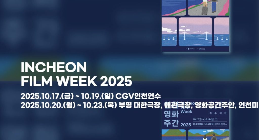 10/20~23 ‘SEE YOU IN CINEMA’는 부평 대한극장·애관극장·영화공간주안·인천미림극장이 릴레이로 바통을 이어받는 파트예요. 상영 뒤 짧은 시네토크·GV가 이어지며, 선착순 50명 굿즈 증정 혜택이 걸려 있습니다. 주중 저녁 시간에 접근성이 좋고, 지역 극장의 큐레이션을 체험할 기회라 ‘퇴근→관람→토크’ 루틴 짜기 좋아요.