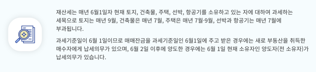 재산세는 지방세에 속하는 세금이에요. 즉, 국세청이 아니라 각 시·군·구청에서 부과하고 징수합니다. 주택, 건축물, 토지, 선박, 항공기 등이 과세 대상이며, 매년 7월(주택, 건축물)과 9월(토지)에 부과됩니다. 과세 기준일은 6월 1일로, 그 시점에 해당 재산을 소유하고 있다면 납세 의무가 발생합니다. 따라서 매매 시점이 5월 말인지 6월 초인지에 따라 세금 부담 주체가 달라질 수 있죠.
