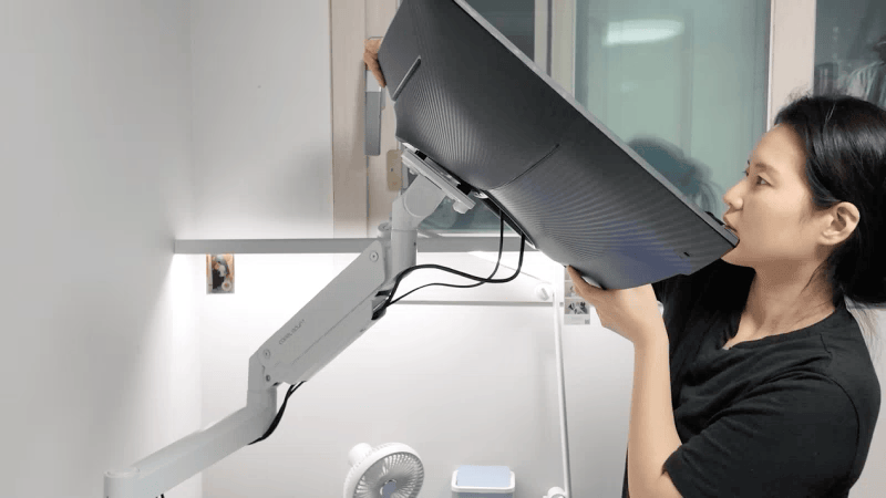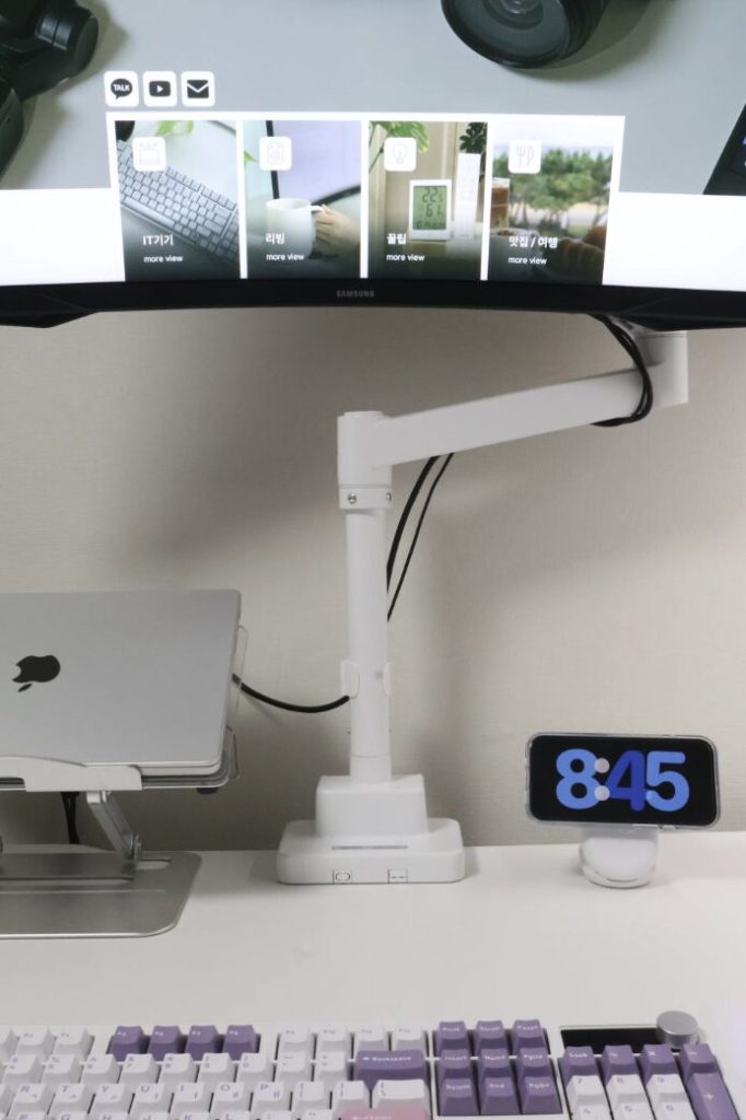 32인치 이상의 대형 모니터를 쓰다 보면 ‘스탠드가 공간을 다 먹는다’, ‘높이가 안 맞아서 목이 뻐근하다’, ‘각도 조절이 거의 안 된다’ 같은 불만이 생기기 시작합니다. 저 역시 32인치 커브드 모니터를 사용하면서 책상이 좁아졌고, 시야보다 아래에 위치한 모니터 때문에 목과 어깨가 항상 뻐근했어요.