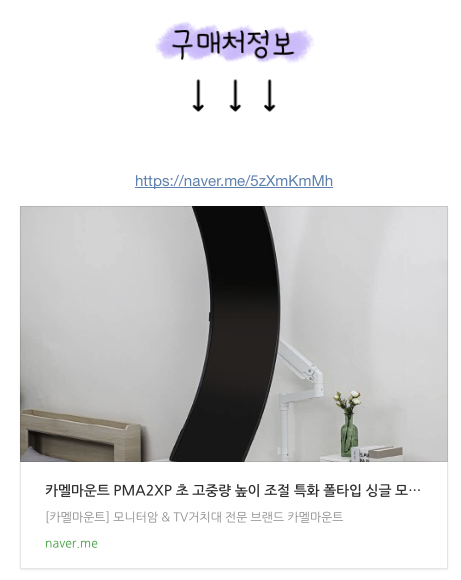 정리하자면, 카멜마운트 PMA2XP는 “내 눈높이에 딱 맞는 압도적인 높이”와 “흔들림 없는 편안함”을 원하는 모니터 사용자에게 최고의 선택이라고 생각해요.