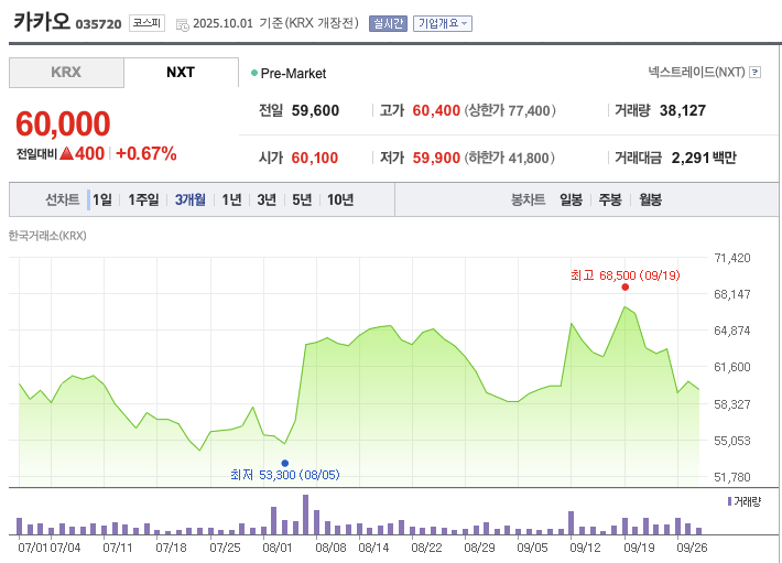 앱마켓에서는 평점이 급락했습니다. 구글 플레이스토어와 앱스토어에는 1점 리뷰가 폭주했고, 일부 이용자는 “이럴 거면 다른 메신저로 옮기겠다”라는 반응까지 보였어요. 이런 분위기는 곧바로 주가에도 반영되어, 카카오 주가는 4% 이상 하락하며 6만 원선이 붕괴되기도 했습니다.