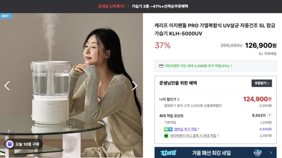 가격은 정가 20만 원이지만 프로모션을 활용하면 약 126,900원 수준으로 구매할 수 있어 가성비도 괜찮습니다. 알림받기 후 제공되는 중복 쿠폰도 꼭 챙기시면 좋겠습니다.