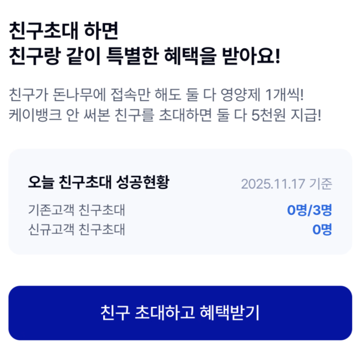초대 링크로 신규 가입신규 가입자와 초대자 모두 5,000원계좌 개설 완료 시 현금으로 바로 입금