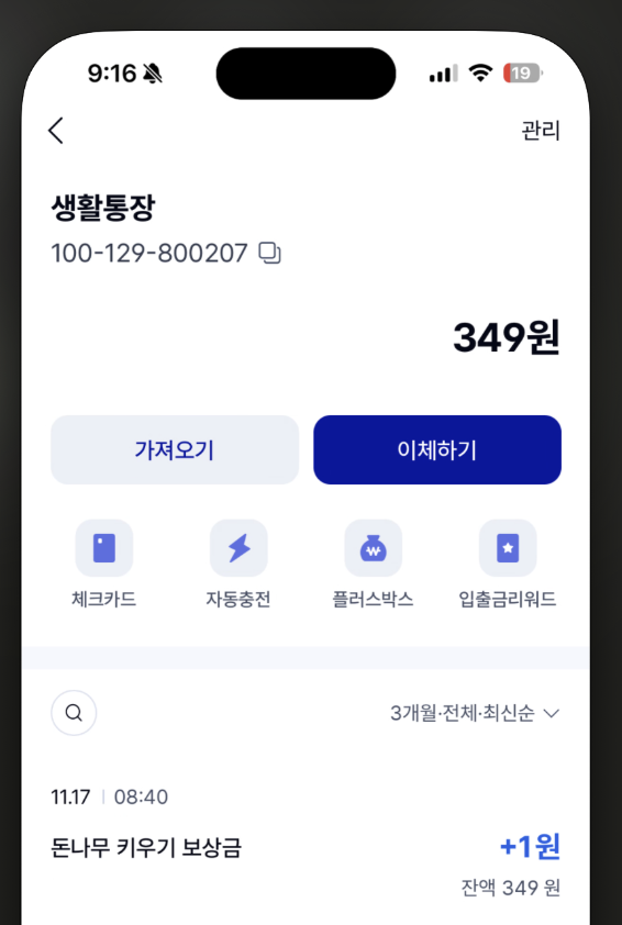 포인트가 아니라 실제 현금으로 들어온다는 점이 가장 큰 특징이에요. 나중에 다른 데로 전환할 필요도 없고, 일정 금액 이상 모아야 출금되는 방식도 아니라서 관리가 단순합니다. 앱을 켜고 몇 번만 터치하면 끝나기 때문에, 출퇴근길이나 누워서 폰 만질 때 하기 좋은 타입의 앱테크입니다.