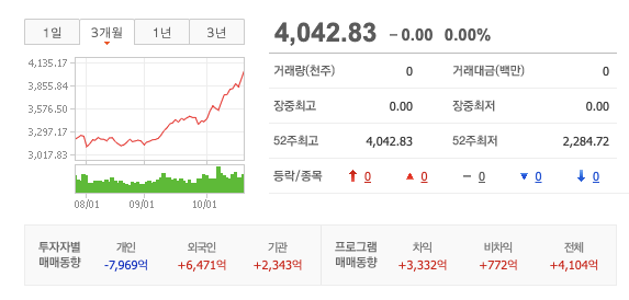 2025년 10월 27일, 코스피가 사상 처음 4000선을 넘어섰어요. 지수가 100에서 출발한 게 1984년이었으니까 약 40년 만에 40배가 된 거죠. 2025년 6월만 해도 코스피는 3000 근처였는데 불과 넉 달 만에 4000을 찍었습니다. 지수로만 계산하면 30% 이상 급등한 셈이에요. 이건 “오랜만에 반등 나왔네” 수준이 아니라, 역사적인 폭주에 가깝습니다.