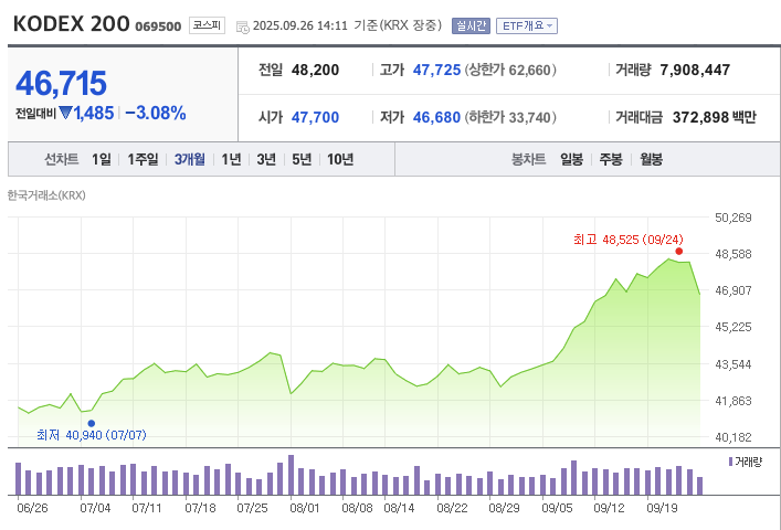 단기 매매를 자주 하면서 언제든 사고팔 수 있는 유동성이 중요하다면 KODEX 200이 유리하고, 장기적으로 꾸준히 투자할 생각이라면 TIGER 200이나 RISE 200이 더 합리적이에요.