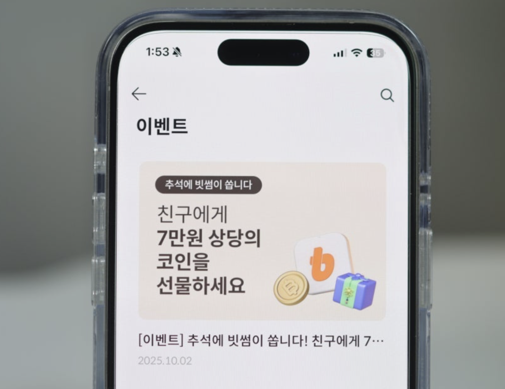코인원은 안정성과 보안에서 강점을 가진 거래소입니다. 코인원 플러스, 지갑 관리, 차트 분석 도구 등 다양한 부가 서비스도 제공해요.0 신규 가입 이벤트 역시 존재하는데, 최근 진행된 프로모션은 초대코드 입력 시 소정의 원화 보상과 특정 코인을 지급하는 방식이었습니다. 다만 금액 규모가 크지 않고, 조건이 까다롭다는 지적도 있었어요.
