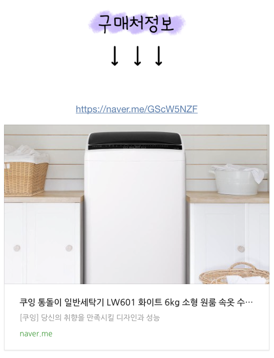 최근에 자취를 시작한 친구 집들이를 다녀왔는데 다용도실에 아주 깔끔한 화이트 톤의 소형 세탁기가 놓여 있더라고요. 어디 제품인지 물어보니 요즘 1인 가구나 서브 세탁기로 쿠잉 제품을 정말 많이 쓴다고 해서 저도 눈여겨보고 있었어요. 마침 수건이랑 속옷만 따로 빨 세탁기가 필요했던 터라 저도 내돈내산으로 구매해서 한 달 정도 꾸준히 사용해 봤습니다.