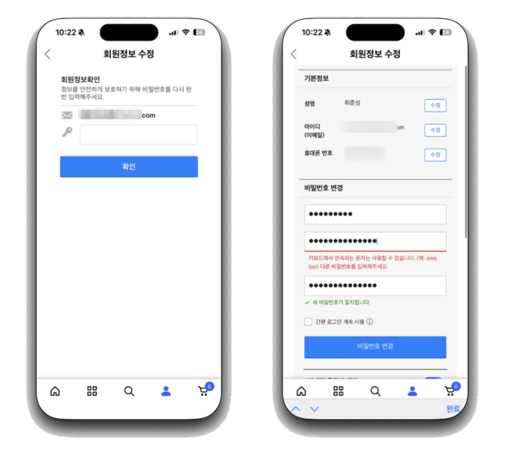 참고로 비밀번호 뿐만 아니라 아이디, 휴대폰 번호도 변경할 수 있어요.
