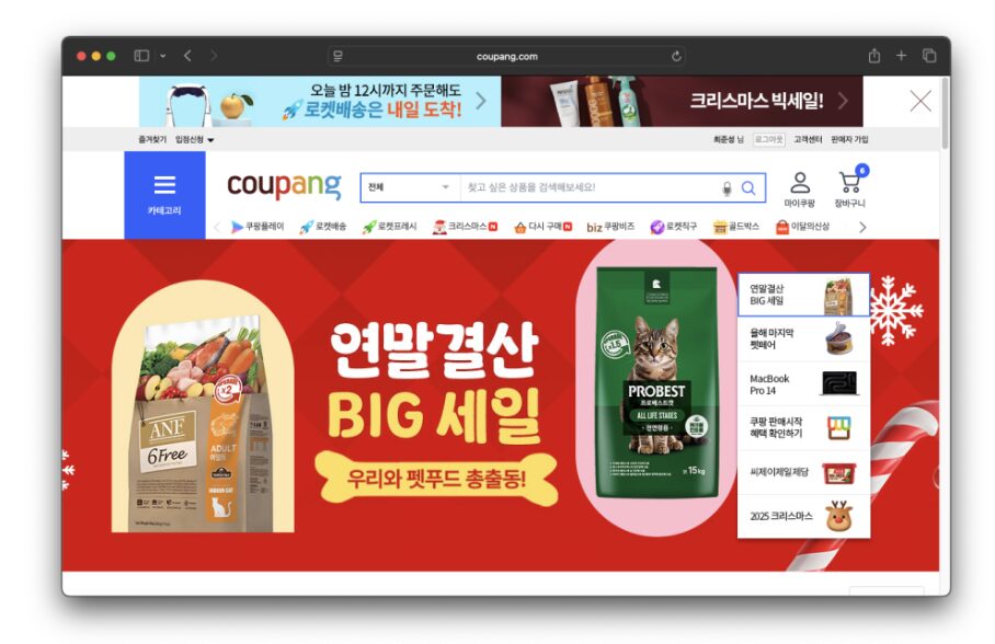 이어서 우측 상단의 [마이쿠팡]으로 들어갑니다.