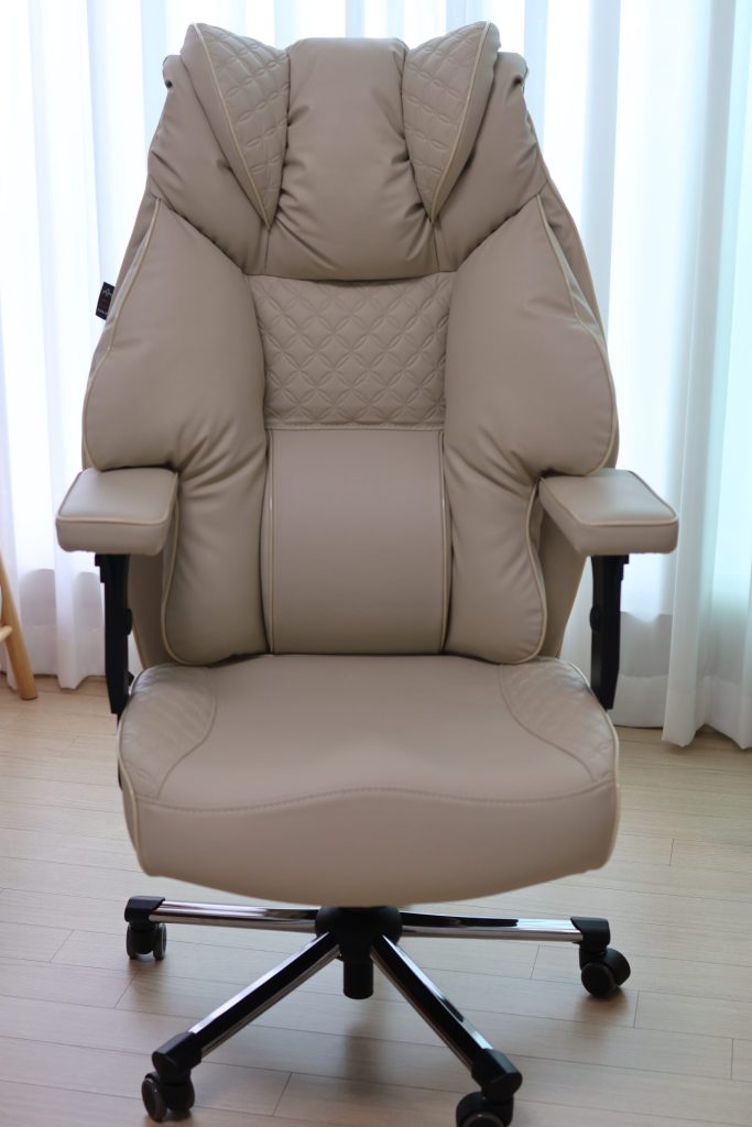 실제로 앉아보면 푹신하면서도 탄탄하게 몸을 받쳐주는 느낌이 듭니다. 특히 헤드쿠션은 베개처럼 머리를 포근하게 감싸주고, 요추 쿠션은 허리의 C커브를 빈틈없이 지지해 줍니다. 140도까지 넘어가는 틸팅 기능을 쓰고 누워 있으면 잠이 솔솔 올 정도로 안락했어요.