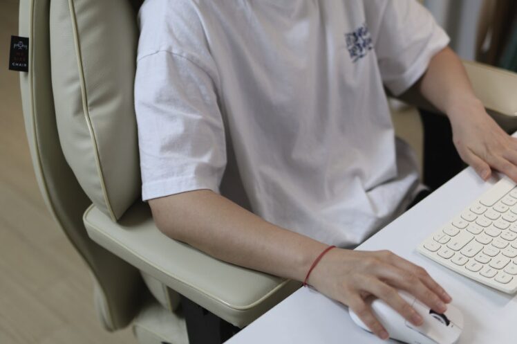 보통 컴퓨터 의자를 쓰다 보면 팔걸이가 책상에 걸려 의자를 끝까지 당겨 앉지 못하는 경우가 많았습니다. 자세가 구부정해지는 원인이기도 했죠. 하지만 이번에 리뉴얼된 마이사이즈체어 2.0은 이 문제를 완벽하게 해결했습니다.