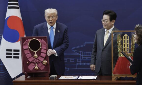 10월 29일, 이재명 대통령은 경주 국립경주박물관에서 트럼프 대통령을 영접해 공식 환영식을 진행했고, 이 자리에서 무궁화대훈장을 직접 수여했습니다. 금관 모형(천마총 금관 레플리카)도 함께 선물됐죠. 환영식과 오찬, 정상회담이 이어졌고, ‘미 대통령 첫 무궁화대훈장’이라는 점이 강조됐습니다.