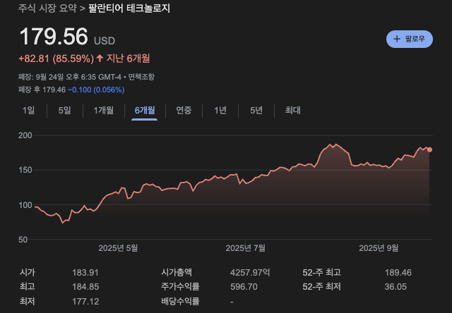 단기적으로는 과열과 조정이 반복될 수 있지만, 장기적으로는 AI와 데이터 분석이 산업 전반의 필수 인프라가 되면서 팔란티어의 위상은 더 높아질 가능성이 큽니다. 따라서 단기 차익보다는 천천히 모아가는 장기적 투자 전략이 더 적합한 종목이라고 할 수 있습니다.