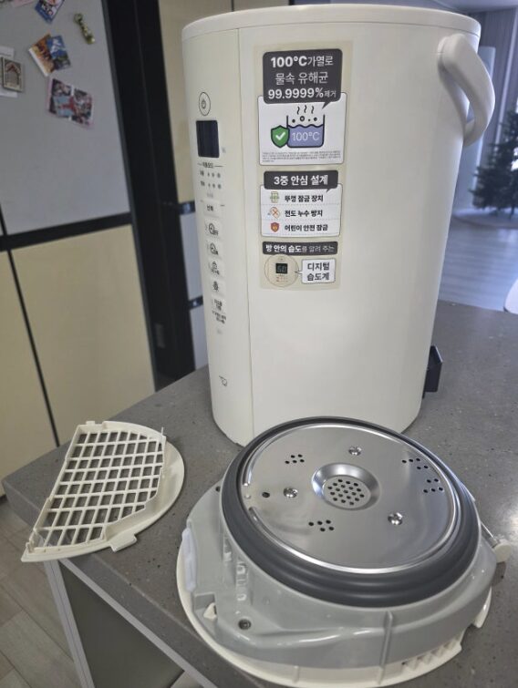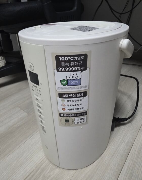 특히 증기가 분출될 때 100도 그대로 나오는 것이 아니라, 뚜껑을 거치면서 약 65도 정도로 식혀서 내보내는 점이 인상적이었어요. 왜냐하면 가열식 가습기는 화상 위험이 늘 걱정되기 마련인데, 이렇게 온도를 제어해 주는 덕분에 실수로 증기에 닿더라도 큰 사고를 예방할 수 있어 마음이 놓였답니다.