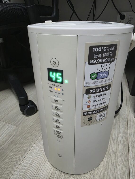 조지루시 가습기를 선택한 가장 큰 이유는 바로 100도 가열 방식이기 때문입니다. 일반적인 초음파식 가습기는 세균 번식이 쉽고 기화식은 살균력이 없어서 늘 찝찝했는데, 이 제품은 물을 끓여서 나오는 순수한 증기로 가습을 해줘요. 덕분에 물속 유해균을 99.9999% 제거해 준다는 인증을 받아서 신생아가 있는 집에서도 안심하고 사용할 수 있었어요.