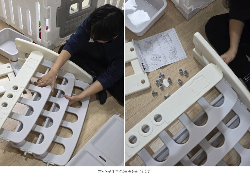 참고로 조립은 혼자서 도구 없이 남녀노소 할 수 있는 수준이에요. 저희는 남편이 조립해줬는데 뜯고 설치완료까지 5분도 안 걸린 것 같습니다.