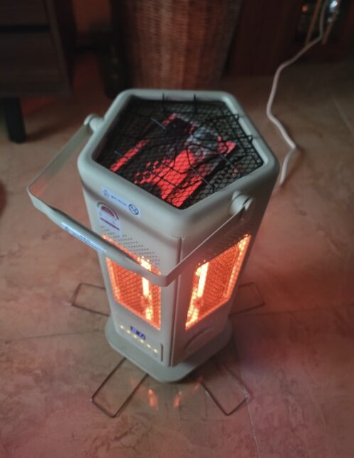첫째, 상단부 발열 속도입니다. 측면의 카본 히터는 3초 만에 뜨거워지지만, 상단의 석영관 히터는 약 7초 정도 예열 시간이 필요합니다. 물론 주전자를 끓이거나 음식을 굽는 용도로는 충분하지만, 즉각적인 난방을 기대했다면 조금 느리게 느껴질 수 있습니다.