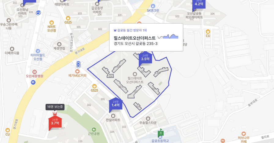 위치는 오산시 갈곶동, 경기대로 24-27 일원이에요. 직주근접성이 우수한 편인데, LG전자와 진위·가장·동탄 산업단지가 인접해 있습니다. 실제로 오산 지역은 산업단지 배후 주거지로 수요가 꾸준히 이어지고 있죠.