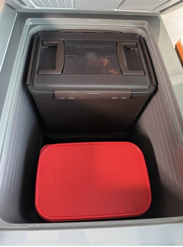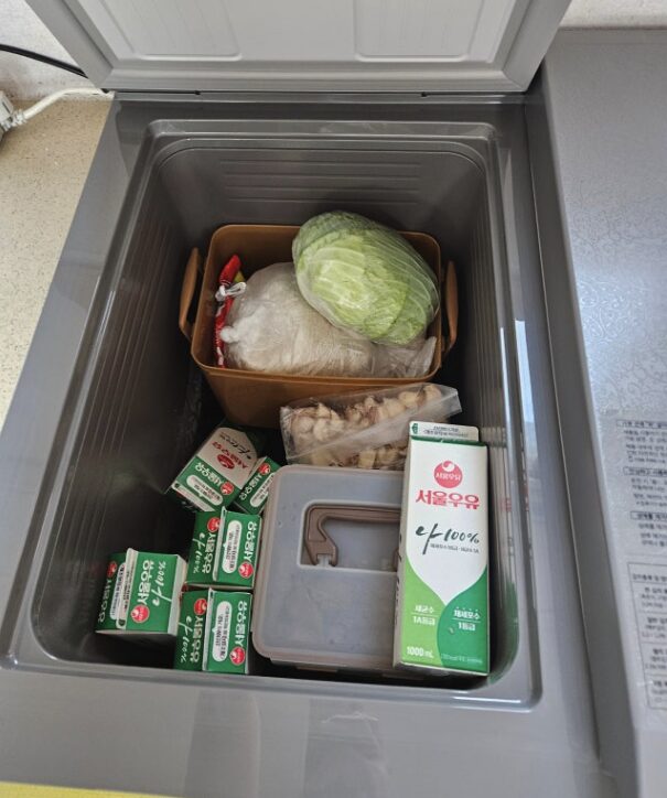 둘째, 뚜껑형 제품의 특성입니다. 스탠드형과 달리 아래쪽에 있는 통을 꺼내려면 위쪽 통을 들어내야 하는 번거로움이 있습니다. 하지만 냉기 보존 능력만큼은 뚜껑형이 탁월하고, 에너지 소비 효율도 1등급이라 24시간 켜두어도 전기요금 부담이 없다는 장점이 이 불편함을 상쇄해 줍니다.