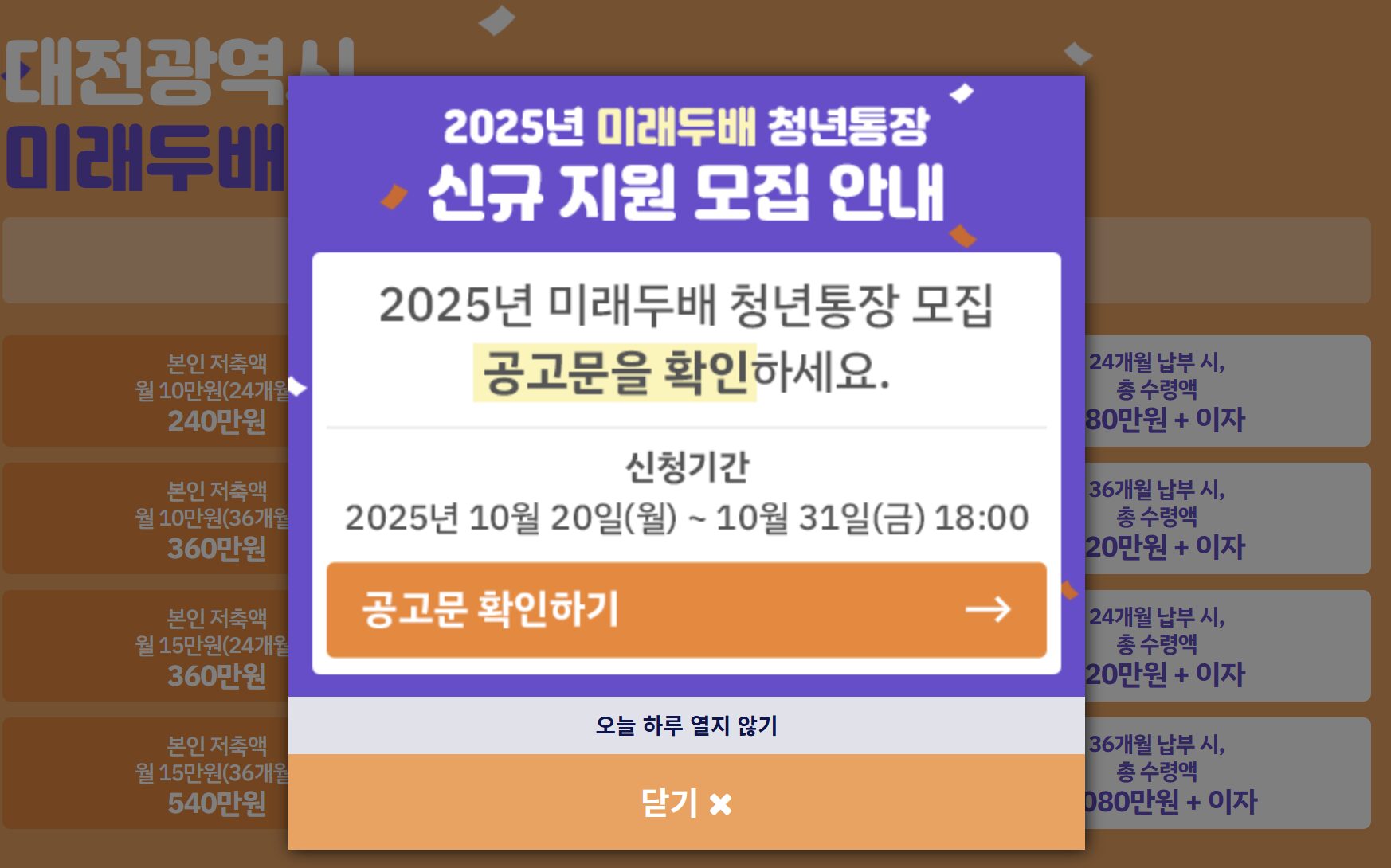 | 월 납입 | 본인 15만 원 + 대전시 15만 원 매칭 |