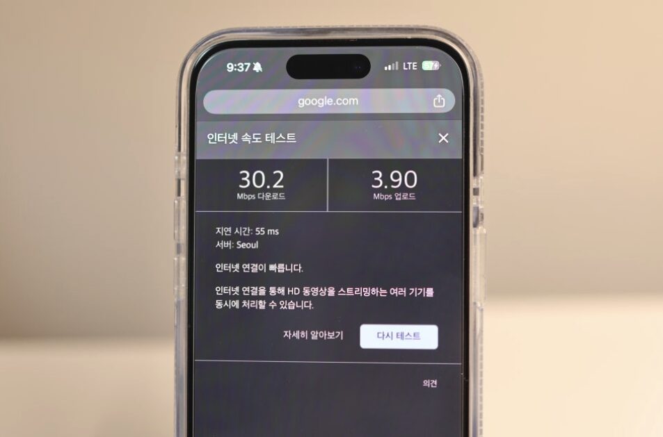 업로드 속도도 중요하다면 5G의 존재감이 더 커집니다. LTE 업로드는 상태가 좋아도 수십 Mbps 대인 반면, 5G는 수백 Mbps 단위까지 치고 올라가는 구간을 꽤 자주 확인할 수 있었어요. 특히 영상 촬영본을 클라우드에 바로 올리거나, 고화질로 화상회의할 때는 이 차이가 꽤 크게 느껴집니다.