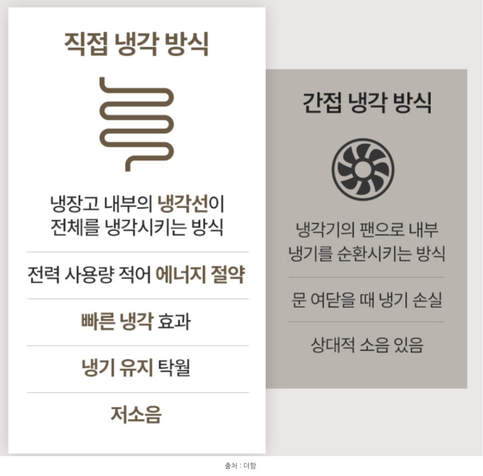 이 냉장고를 선택한 가장 큰 이유는 바로 직접 냉각 방식 때문입니다. 보통 대형 냉장고는 간접 냉각(팬으로 바람을 불어주는 방식)을 쓰지만, 소형에서 간접 냉각은 식재료의 수분을 빠르게 빼앗아 가는 단점이 있거든요.
