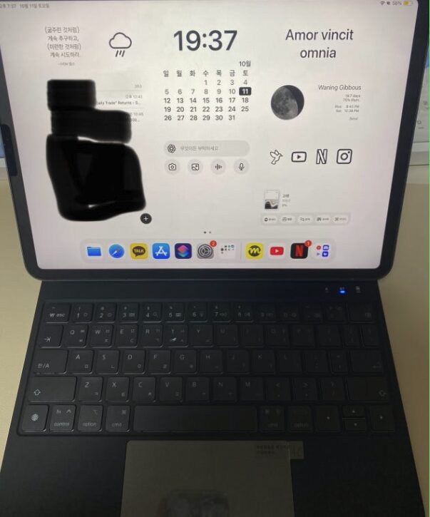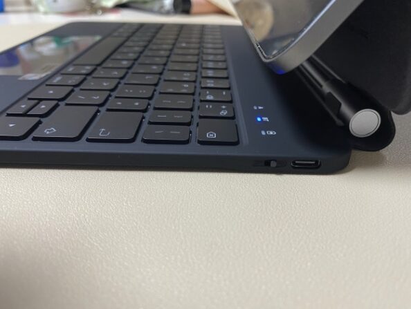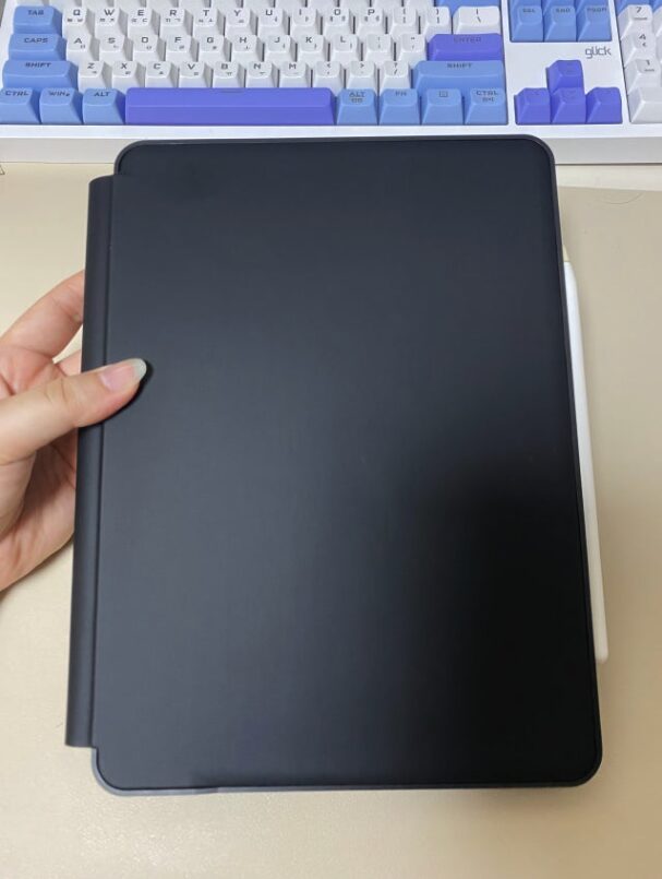 제품을 처음 받았을 때 가장 먼저 눈에 들어온 것은 깔끔하고 모던한 디자인이었어요. 군더더기 없는 마감 덕분에 아이패드와 결합했을 때 마치 하나의 기기처럼 일체감이 훌륭했거든요. 650g의 가벼운 무게를 자랑하기 때문에 휴대성 면에서도 큰 만족감을 느꼈어요. 왜냐하면 기존의 다른 호환 키보드들은 너무 무거워 들고 다니기 부담스러운 경우가 많았기 때문입니다. 덕분에 카페나 도서관에 갈 때도 큰 고민 없이 가방에 쏙 넣어 다닐 수 있어서 좋았어요.