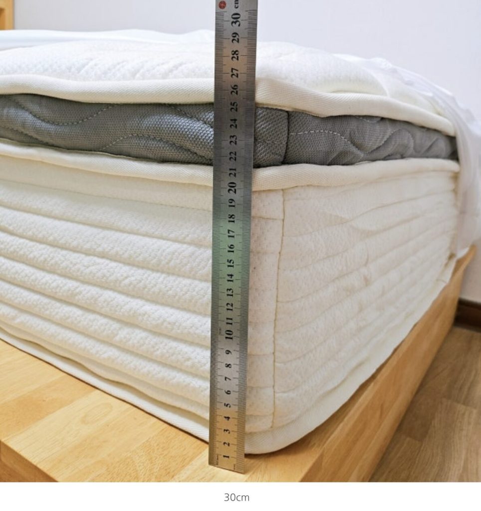 이 제품은 폼의 푹신함과 스프링의 탄탄함을 동시에 느낄 수 있는 하이브리드 방식이에요. 상단에는 부드러운 메모리폼이 몸을 감싸주고 하단에서는 2.3mm 두께의 강탄성 아이코일 포켓 스프링이 신체를 든든하게 받쳐줍니다.