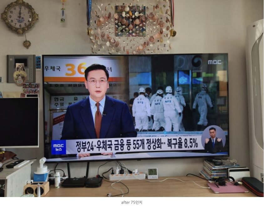 물론 쓰면서 아쉬운 점도 하나 있었습니다. 이 모델은 기본 구성품으로 일반 리모컨이 들어있는데, LG TV의 꽃이라고 할 수 있는 AI 매직 리모컨은 별도로 구매해야 하더라고요. 마우스처럼 휠을 돌리고 음성 인식을 제대로 활용하려면 매직 리모컨이 필수인데, 이 부분이 추가 지출로 이어진다는 점은 미리 알고 계시면 좋을 것 같습니다. 그래도 75인치라는 대화면에 에너지 소비효율 1등급이라는 장점이 워낙 강력해서 전기료 걱정 없이 마음껏 켤 수 있다는 점이 모든 걸 상쇄해주긴 하네요.