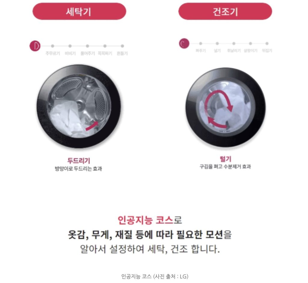 | 주요 기능 | 인공지능 세탁·건조, 6모션, 듀얼 인버터 히트펌프, UP가전 |