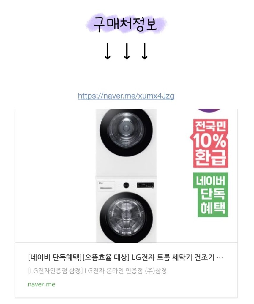 최근에 친구들 집들이를 두 번 연속 갔는데 두 집 모두 LG 트롬 세트 화이트 모델을 쓰고 있더라고요. 예전에 방문했던 다른 신생아 키우는 친구네 집에서도 같은 제품을 쓰고 있는 것을 봤던 터라 궁금해서 슬쩍 물어봤어요. 친구가 말하기를 요즘 가전은 디자인도 중요하지만 성능 때문에 결국 이걸로 정착하게 된다며 강력하게 추천해 주더라고요.