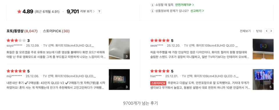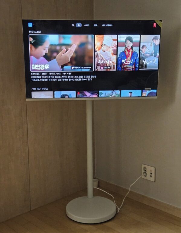 최근에 친구들 집들이를 두 번 연속 갔는데 두 집 모두 이 제품을 쓰고 있더라고요. 요즘 정말 인기 있는 아이템이라는 게 실감이 났습니다. 마침 저도 거실 TV 말고 침대나 주방에서 편하게 볼 세컨드 TV가 필요했던 터라 꼼꼼하게 물어보고 내돈내산으로 구매하게 되었어요.