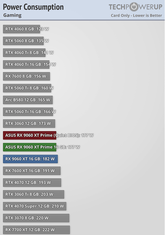 9060XT의 공표 TDP는 160W지만 실게임 기준으로는 180W 전후로 보는 게 맞습니다. 하지만 이 정도면 600W급 파워에서 다른 부품들과 함께 돌려도 여유가 있어요. 전력에 신경써야하는 제품은 아닙니다.