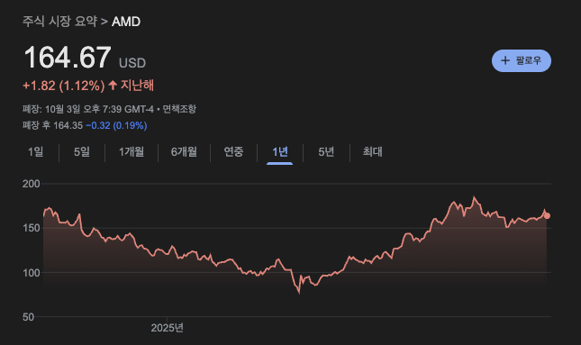 결국 AMD의 주가는 AI 가속기 성과와 정책 리스크라는 두 축 위에서 움직입니다. 단기 등락에 일희일비하기보다는, 데이터센터 수주와 AI PC 확산 속도를 분기마다 체크하는 것이 중요합니다. 저는 개인적으로 150달러대 지지가 유지되는 한, 분할 매수 관점에서 접근할 만한 종목이라고 보고 있습니다.