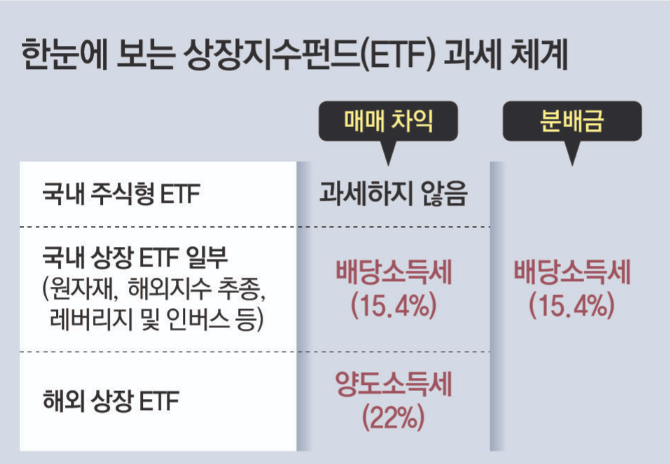 국내 ETF: 매매차익 비과세, 분배금 15.4%