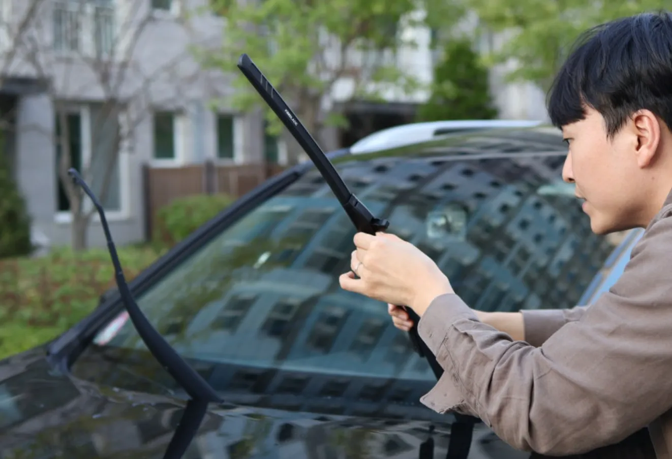 기존 와이퍼는 대부분 역삼각형 날을 사용하는데, 이 와이퍼는 사각형 날을 사용해 유리 표면에 더욱 밀착됩니다.