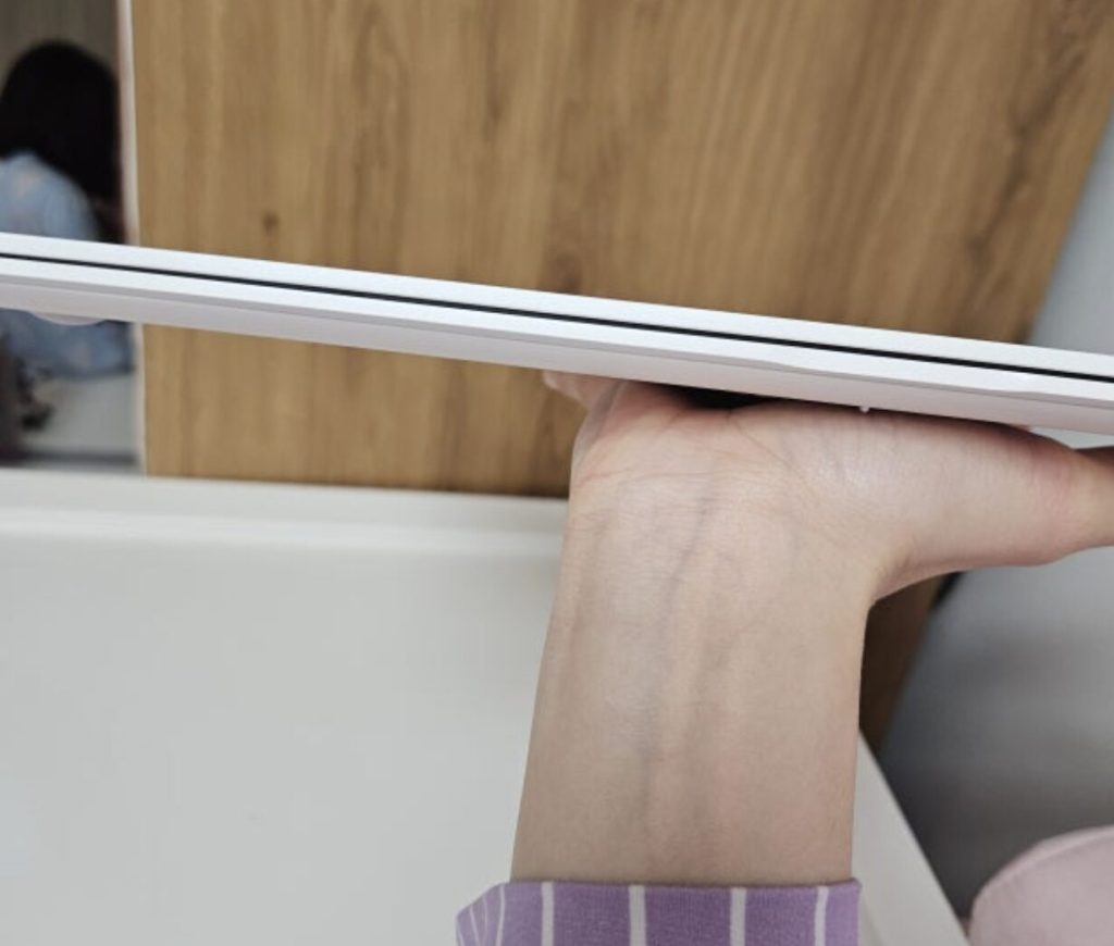 이 제품을 택배로 받고 처음 들어봤을 때 가장 먼저 든 생각은 ‘안에 배터리가 빠진 거 아니야?’였어요. 16인치라는 시원시원한 대화면을 가지고 있음에도 불구하고 무게가 고작 1,199g밖에 되지 않거든요. 보통 고성능 노트북들이 2kg에 육박하는 걸 생각하면 이건 정말 혁신적인 가벼움이에요.