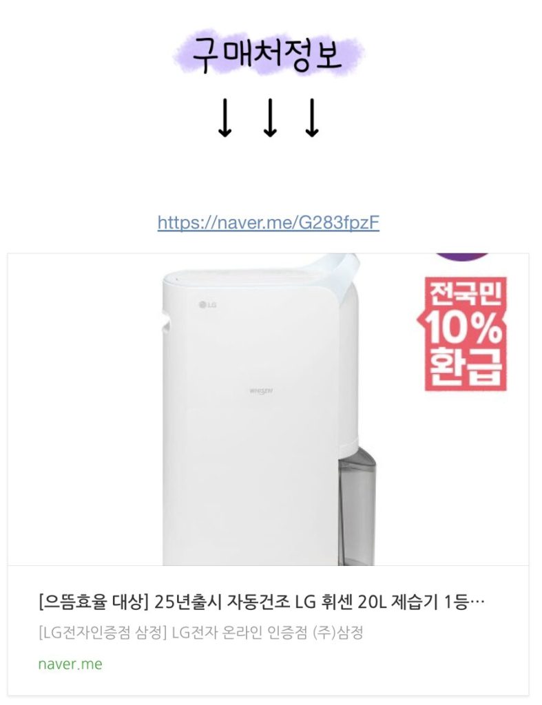 이 문제를 해결하는 가장 좋은 방법은 침대를 옥상으로 들고 가 햇볕에 말리는 것이라고 해요. 하지만 춥고 미세먼지가 많은 겨울철에는 현실적으로 불가능하죠. 게다가 겨울철에는 환기가 어려워 실내 습도가 높아지고, 결로 현상까지 겹치면 그야말로 세균 번식의 최적 조건이 갖춰집니다. 그래서 저는 눅눅한 습기를 잡고 쾌적한 환경을 만들기 위해 LG 휘센 제습기 DQ205PBBC 모델을 내돈내산으로 구매하게 되었어요.