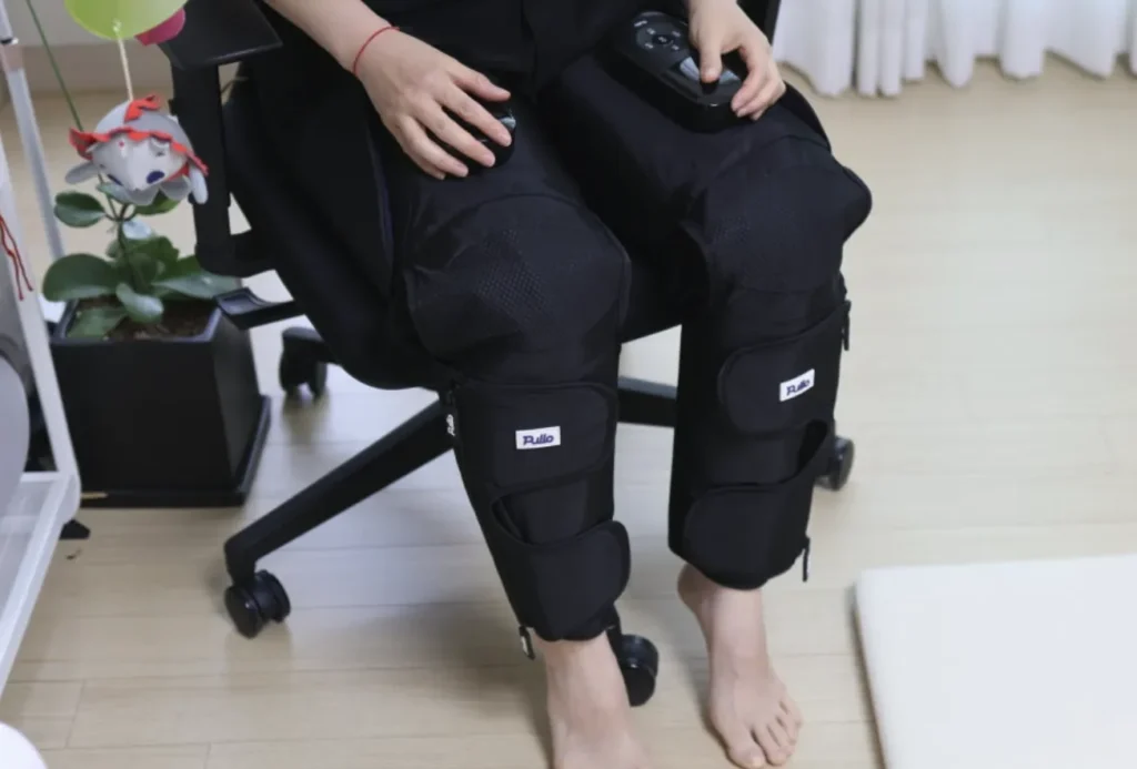 허벅지, 무릎, 종아리를 전부 감싸는 구조라서 딱 한 번 착용만 하면 전반적인 하체 피로를 관리할 수 있더라고요. 이 기능 덕분에 굳이 허벅지용, 종아리용 따로 살 필요가 없어서 좋았어요.
